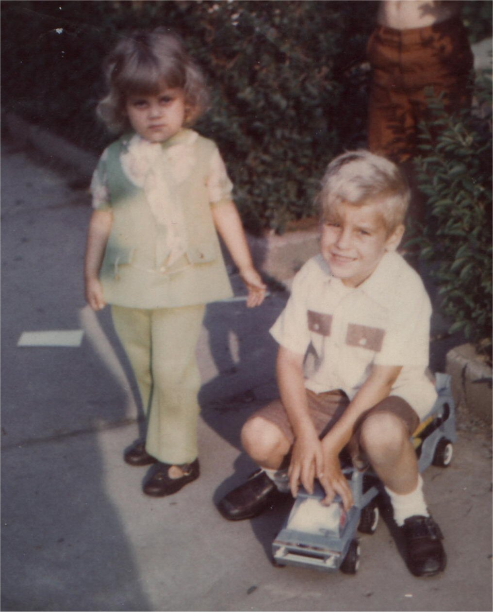 | Here I am Easter 1971ish. (Around 4) Standing behind me is sister Laura. Boy don't we look happy! I am guessing that I cut